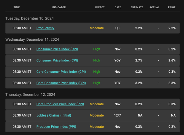 Economic Calendar for the Week of December 9-13
