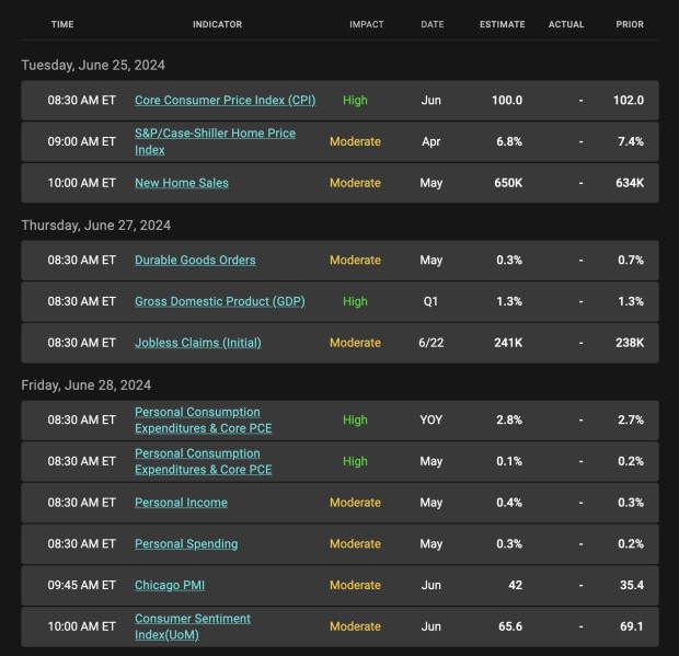Economic Calendar for the Week of June 24 – 28